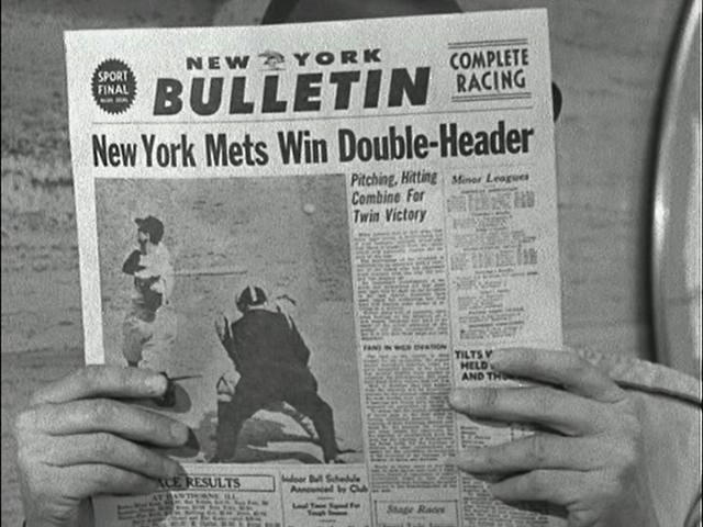 Mel Brooks & Buck Henry: "(Voice) New York Mets Win Double-Header." "(Max) I know, I know!" |