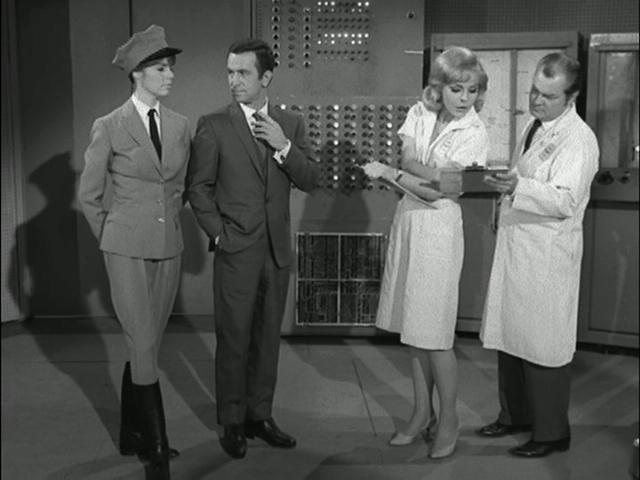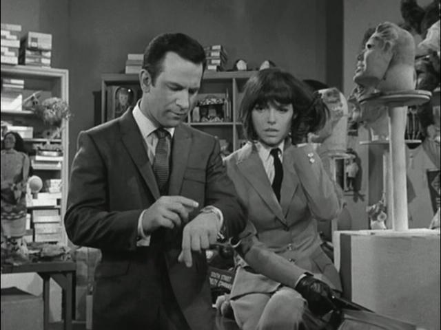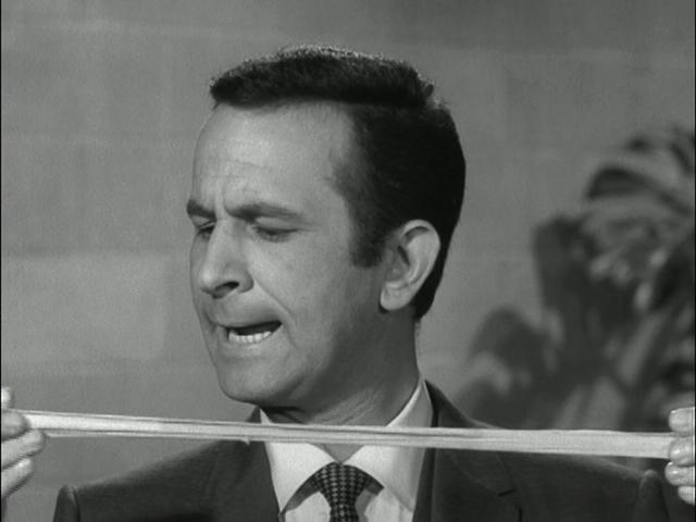 Mel Brooks & Buck Henry: "(Max) 99?" (Looks at her, still wearing the bino-specs) |