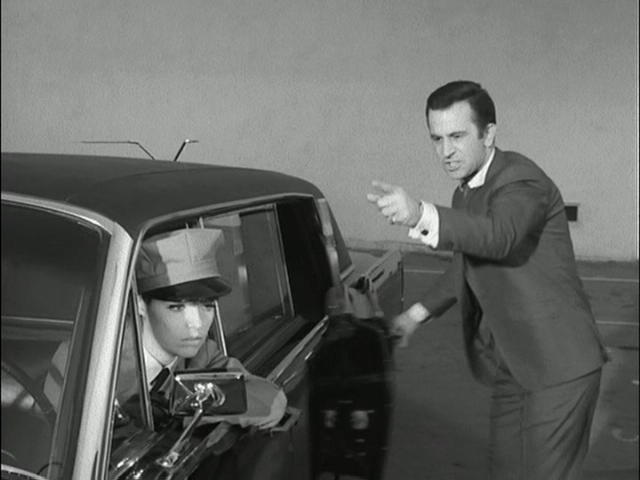 Mel Brooks & Buck Henry: (...Makes his way to a dark Ferrari of uncertain color [durn this black and white!],...) |