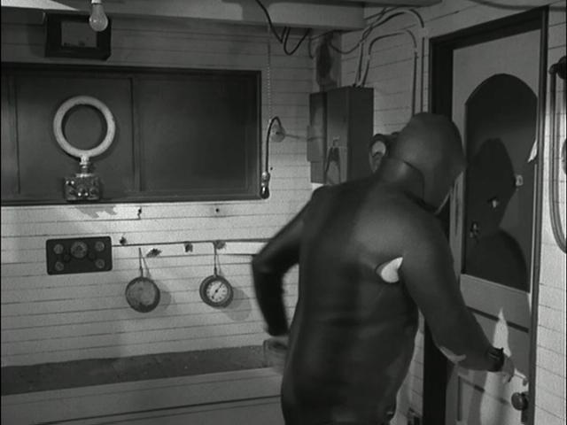 Mel Brooks & Buck Henry: (The wetsuited thugs come out on deck.) |