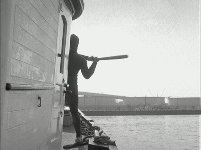Mel Brooks & Buck Henry: (...and uses it to knock the final thug into the harbor.) |