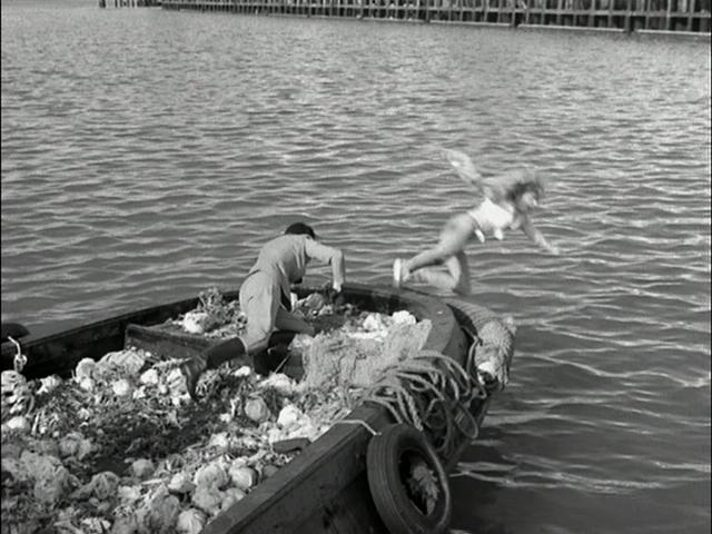 Mel Brooks & Buck Henry: (Before Maxwell can get there, 99 helps herself, pushing Zelinka into the harbor.) |